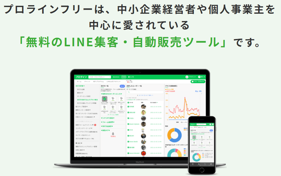LINE公式アカウントの機能を拡張するツールがプロラインフリーです。